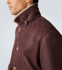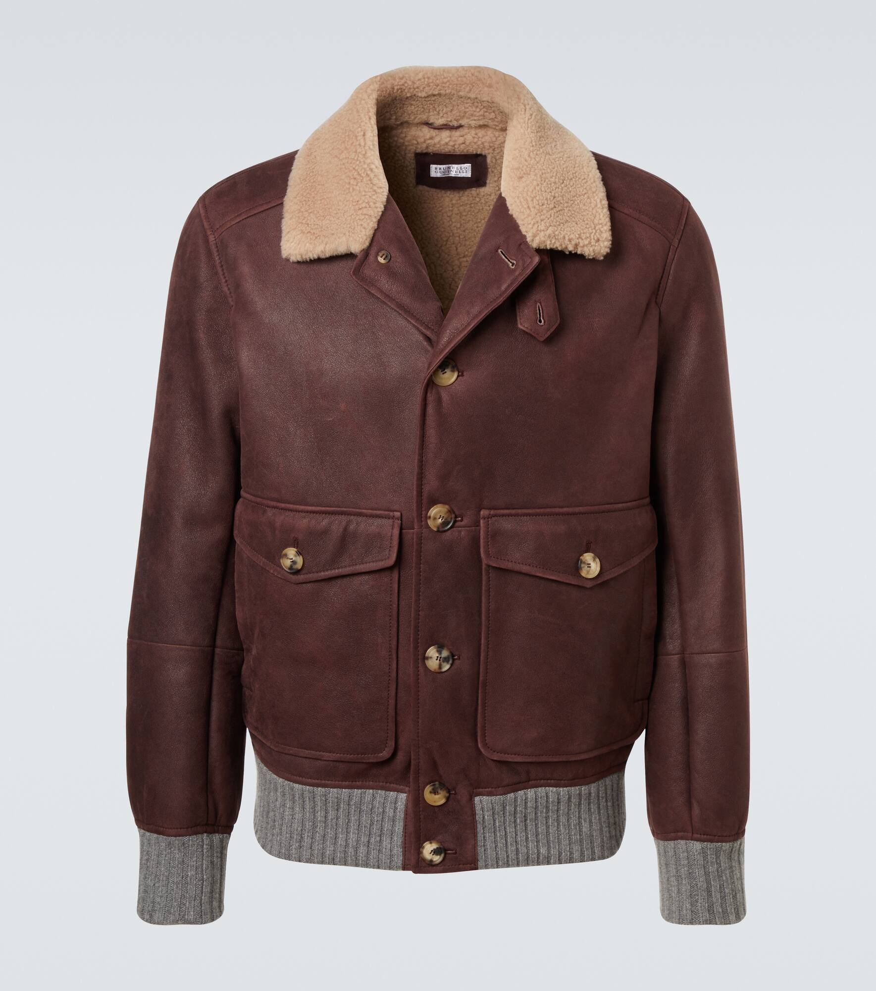 Brunello Cucinelli's designs are created in Solomeo, a medieval hamlet whose art and traditions are woven into the house's every fiber. Meticulously crafted from lambskin leather, this buttoned jacket features a shearling collar and ribbed-knit cashmere trims. Product Details - Material: 100% cashmere - Care instructions: specialist clean - Made in Italy - Designer color name: C4253 - Item color: burgundy - Material II: 100% sheep leather - Pocket lining: 100% cotton - Contains non-textile parts of animal origin - Pockets: buttoned pockets - Includes: dust bag - Item number: P01055975 Size & Fit - True to size - Straight fit - Elasticated hem - Non-stretchy fabric - Falls to the hip - Height of model is 188cm-74" and wears a size L
