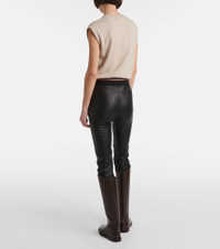 Product Details - Material: 100% leather - Care instructions: dry clean - Made in Italy - Designer color name: Black - Item color: black - Includes: garment bag - Closure: zipped side - Elasticated waistband - Lining: 65% acetate, 35% polyester - Contains non-textile parts of animal origin - Trim: 42% wool, 42% acrylic, 8% polyamide, 8% elastane - Item number: P01016209 Size & Fit - True to size - Elasticated waist - Stretchy fabric - Slim-leg - The model seen in the picture is 178cm-5'10" and wearing a size IT 40