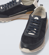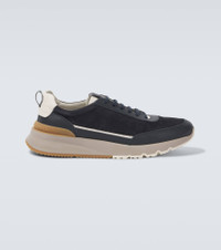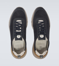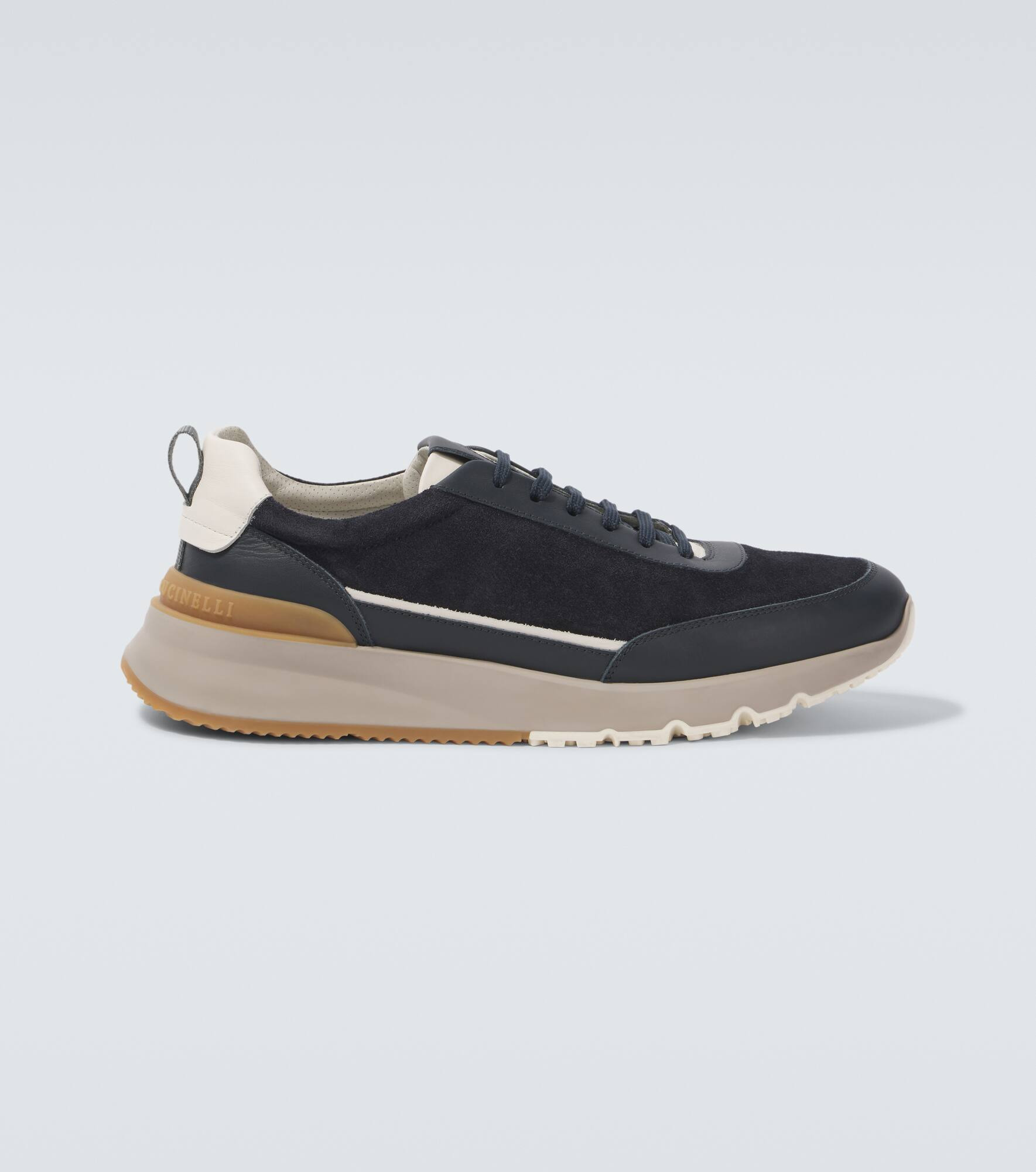 Brunello Cucinelli uses the finest materials to create endlessly versatile styles, like these sneakers. They're made from washed suede with semi-polished calf leather trims, then complete with EVA outsoles for optimal comfort. Product Details - Upper: calf leather (suede) - Lining: goat leather - Sole: rubber insole and sole - Toe shape: round toe - Made in Italy - Includes: shoe box, dust bag - Designer color name: CYD22 - Item color: blue - Item number: P01056157 Size & Fit - True to size - European sizes