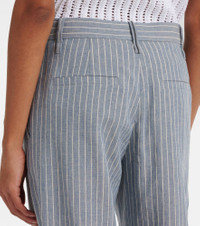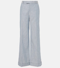 Linen and hemp chalk stripe twill loose flared trousers with monili