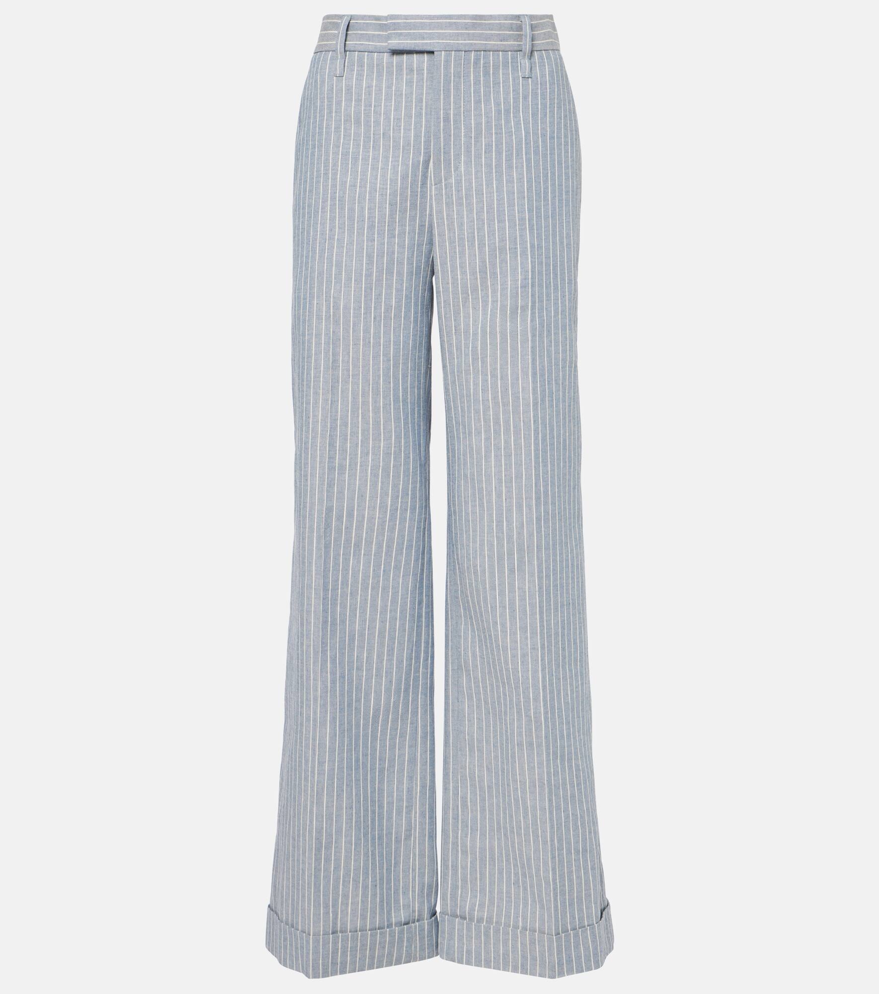 Product Details - Material: 50% linen, 35% cotton, 15% hemp - Care instructions: dry clean - Made in Italy - Designer color name: Celeste/Bianco - Closure: zip, hook, and button fastening - Pockets: side slit pockets, back pockets - Belt loops - Lining: 65% acetate, 35% polyester - Contains non-textile parts of animal origin - Item number: P01016094 Size & Fit - True to size - Non-stretchy fabric - Wide-leg - The model seen in the picture is 178cm-5'10" and wearing a size IT 40