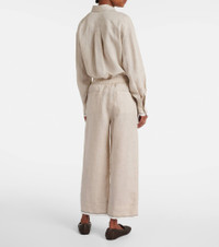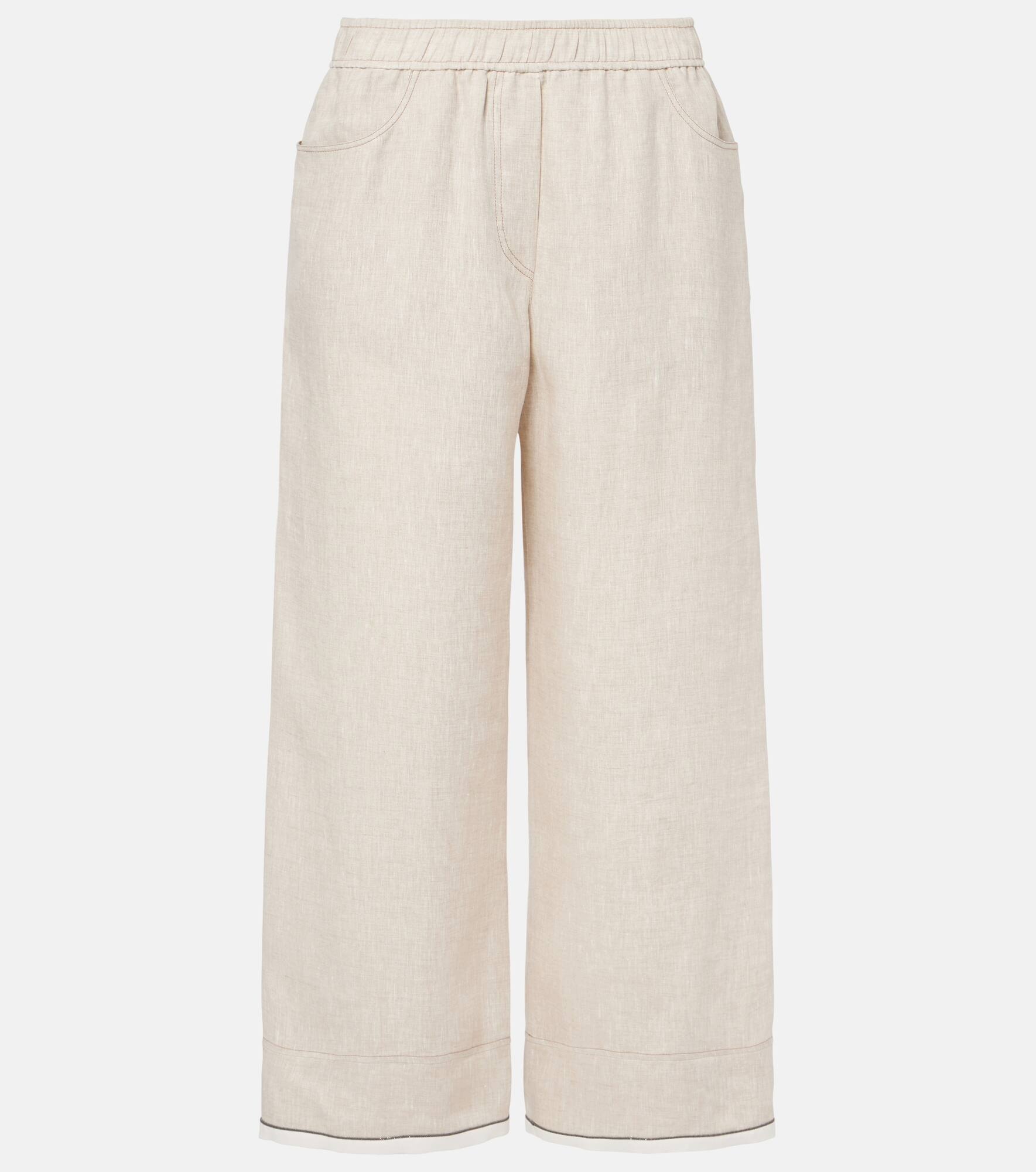 Product Details - Material: 100% linen - Care instructions: hand wash - Made in Italy - Designer color name: Juta - Elasticated waistband - Pockets: side slit pockets, back pockets - Item number: P01016112 Size & Fit - True to size - Elasticated waist - Non-stretchy fabric - Wide-leg - The model seen in the picture is 178cm-5'10" and wearing a size XS