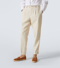 Understated and sophisticated, this suit from Brunello Cucinelli is the embodiment of Italian elegance. Crafted from lightweight linen with meticulous attention to detail, it comprises a single-breasted jacket and streamlined pants. Product Details - Material: 100% linen - Care instructions: dry clean - Made in Italy - Designer color name: Shell White - Lining: 100% cotton - Lining II: 100% viscose - Other inner trims: 60% acetate, 40% cupro - Jacket construction: unstructured - Shoulder construction: unstructured - Full canvas - Notched lapel - Quarter-lined - Length: regular (hip-length) - Cuff: four buttons - Vent: double - Closure: single-breasted (three buttons), zip, hook, and button fastening - Pockets: side slit pockets, back pockets, ticket pocket, internal pockets, breast pocket - Single pleat - Full length - Hem: finished - Belt loops - Contains non-textile parts of animal origin - Item number: P01041885 Size & Fit - True to size - Regular fit - Non-stretchy fabric - Falls below the hip - Straight leg - Unhemmed for tailoring - The model in the picture is 185cm-6'1" and wearing a size IT 50
