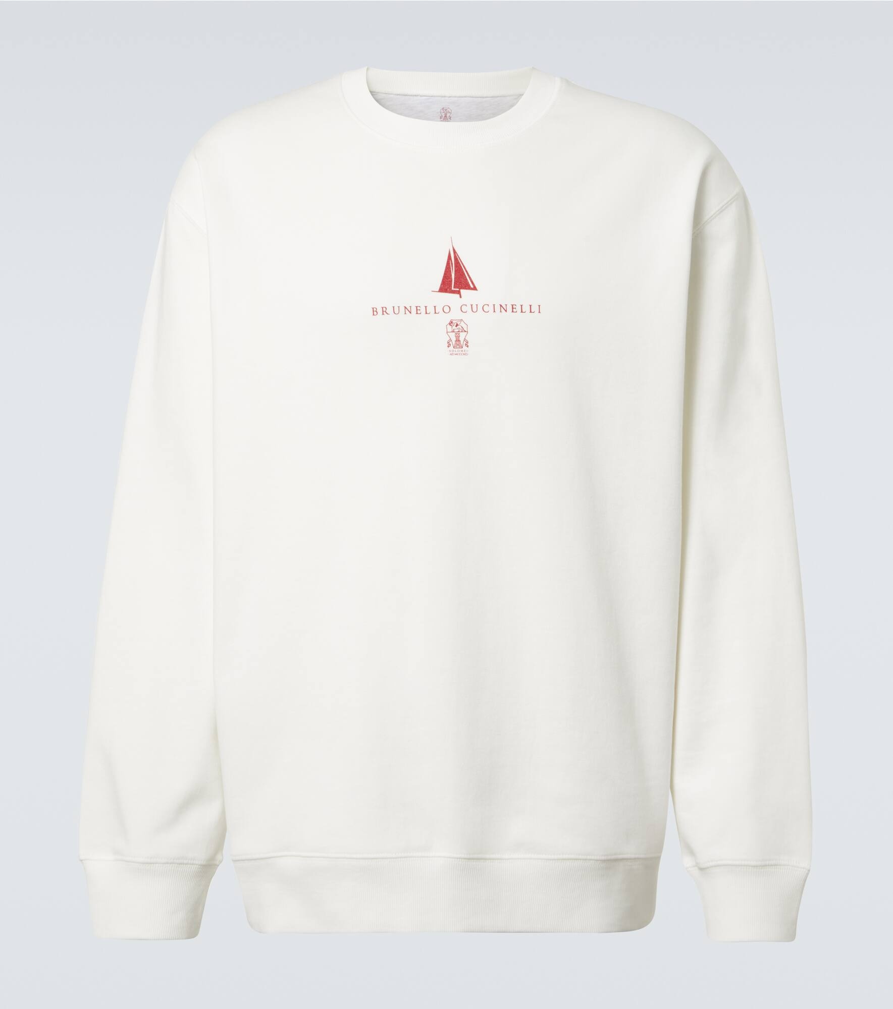 Brunello Cucinelli's designs are created in Solomeo, a medieval hamlet whose art and traditions are woven into the house's every fiber. This sweatshirt is crafted from jersey and topped with the brand’s iconic logo. Product Details - Material: 95% cotton, 5% polyamide - Care instructions: machine wash cold - Made in Italy - Designer color name: Off White - Item color: white - Item number: P01046393 Size & Fit - True to size - Designed for a loose fit - Non-stretchy fabric - Falls below the hip - Height of model is 190cm-75" and wears a size L