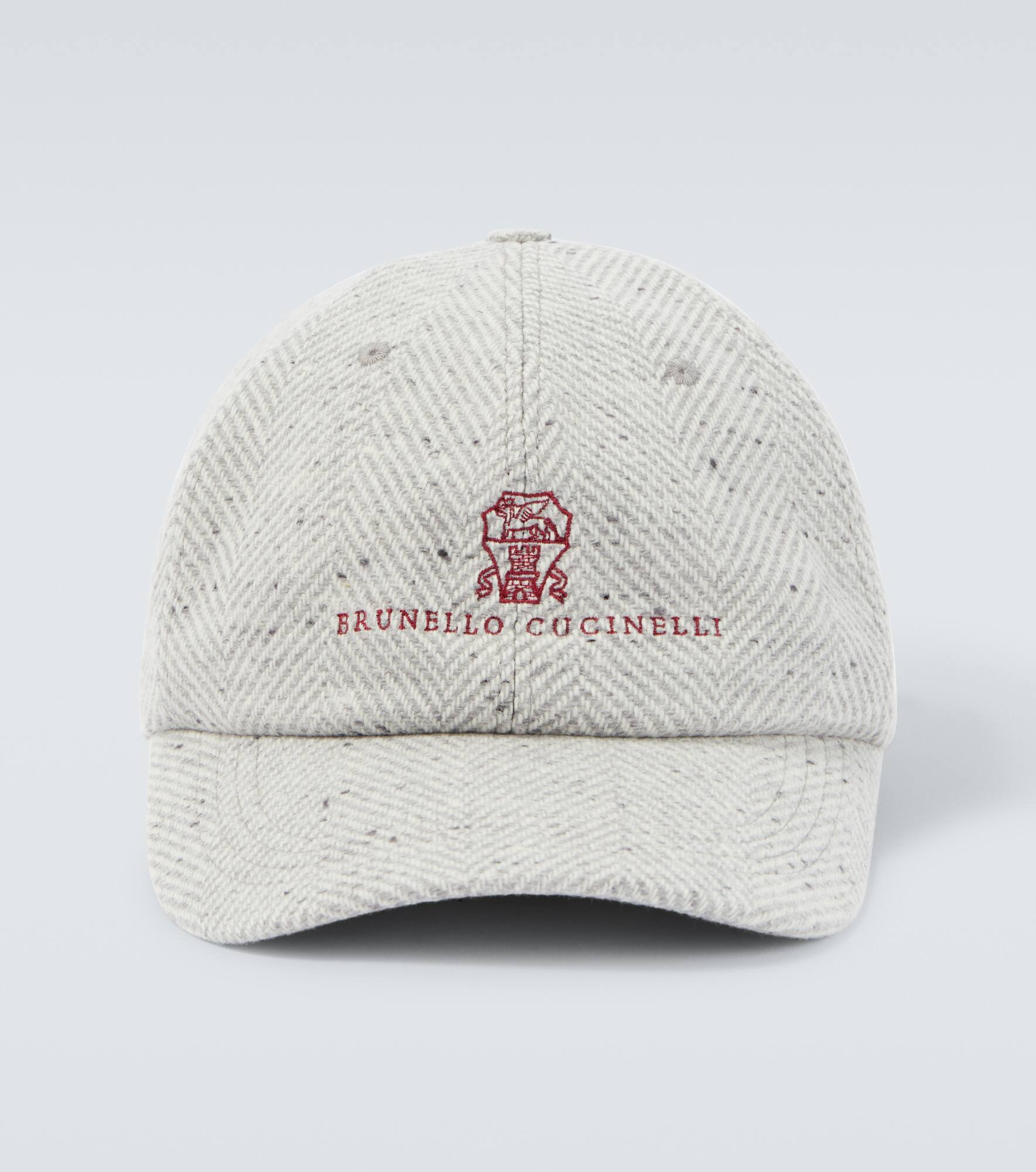 Elevate casual ensembles with this Brunello Cucinelli baseball cap. Crafted from a soft blend of wool and cashmere, the striped design is detailed with the maison's logo at the front for a refined finish. Product Details - Material: 96% wool, 4% cashmere - Care instructions: dry clean - Made in Italy - Designer color name: Cxf75 - Item color: gray - Lining: 100% cotton - Contains non-textile parts of animal origin - Details: 100% leather - Item number: P01056127 Size & Fit - Adjustable size - Length of visor 7.5cm-3"