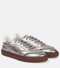 Brunello Cucinelli's designs are created in Solomeo, a medieval hamlet whose art and traditions are woven into the house's every fiber. Crafted from metallic leather, these sneakers feature leather linings and insoles on round-toe silhouettes. Product Details - Upper: leather - Lining: leather - Sole: leather insole, rubber sole - Toe shape: round toe - Made in Italy - Includes: shoe box, dust bags - Designer color name: Silver - Item color: silver - Closure: lace-up - Item number: P01058345 Size & Fit - Fits slightly large to size - we recommend trying a half size smaller - European sizes - 3cm-1" platform (size EU 38)