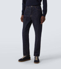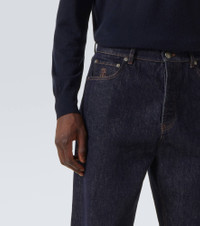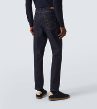 Crafted in Italy, these slim jeans feature a mid-rise style. Brunello Cucinelli's designs are created in Solomeo, a medieval hamlet whose art and traditions are woven into the house's every fiber. Product Details - Material: 100% cotton - Care instructions: dry clean - Made in Italy - Designer color name: Denim Raw - Item color: blue - Details: 100% calf leather - Item number: P01056067 Size & Fit - True to size - Non-stretchy fabric - Slim-leg - Mid-rise - The model in the picture is 185cm-6'1" and wearing a size 50