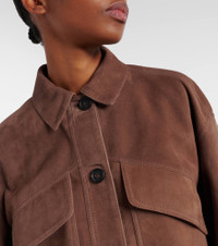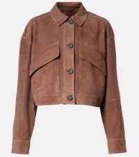 This jacket showcases Brunello Cucinelli's signature flair for fine craftsmanship with a cropped suede construction. The design is fitted with slanted flap pockets on the front and Monili beading below the collar. Product Details - Material: 100% leather (suede) - Care instructions: specialist clean - Made in Italy - Color: brown - Designer color name: Mauve - Pocket lining: 74% acetate, 26% silk - Details: 100% brass - Contains non-textile parts of animal origin - Closure: buttoned front - Includes: garment bag - Item number: P01143567 Size & Fit - True to size - Dropped shoulders - Straight fit - Non-stretchy fabric - Slightly cropped - The model seen in the picture is 178cm-5'10" and wearing a size IT 40
