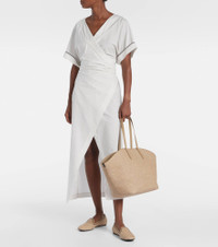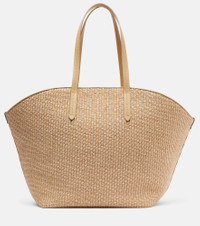 Monili leather-trimmed raffia-effect basket bag
