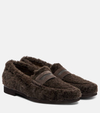 Bead-embellished Suede-trimmed Shearling Loafers