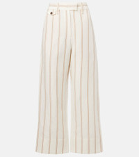 Linen and cotton regimental stripe panama cropped chino trousers with monili