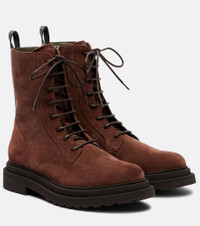 A Brunello Cucinelli signature, monili beading is made from nickel-free brass that's faceted to create a sparkling effect and hand-applied to each item. These suede ankle boots feature the embellishments as extended pull-tabs at the backs. Product Details - Upper: leather (suede) - Lining: leather - Sole: leather insole, rubber sole - Toe shape: round toe - Made in Italy - Includes: shoe box, dust bag - Designer color name: Brown - Item color: brown - Closure: lace-up, zipped side - Item number: P01058319 Size & Fit - True to size - European sizes - 3,5cm-1.5" platform (size EU 38) - 5cm-2" wedge heel (size EU 38)