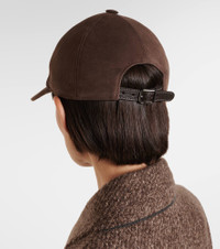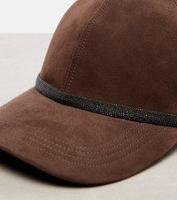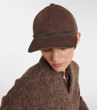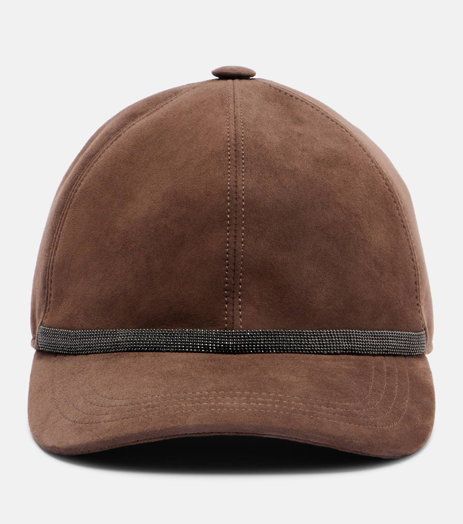 Brunello Cucinelli: where fine Italian craftsmanship, luxurious fabrics, and timeless elegance meet. This baseball cap is crafted from smooth suede with a Monili bead trim that adds a distinctive, sophisticated touch. Product Details - Care instructions: specialist clean - Made in Italy - Designer color name: Testa Di Moro - Item color: brown - Includes: box - Lining: 74% acetate, 26% silk - Material II: 60% cotton, 40% acetate - Details: 100% brass - Contains non-textile parts of animal origin - Item number: P01038033 Size & Fit - Adjustable size - Circumference 59cm-23" - Length of visor 6.5cm-2.5"