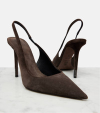 Suede slingback heels with shiny detail