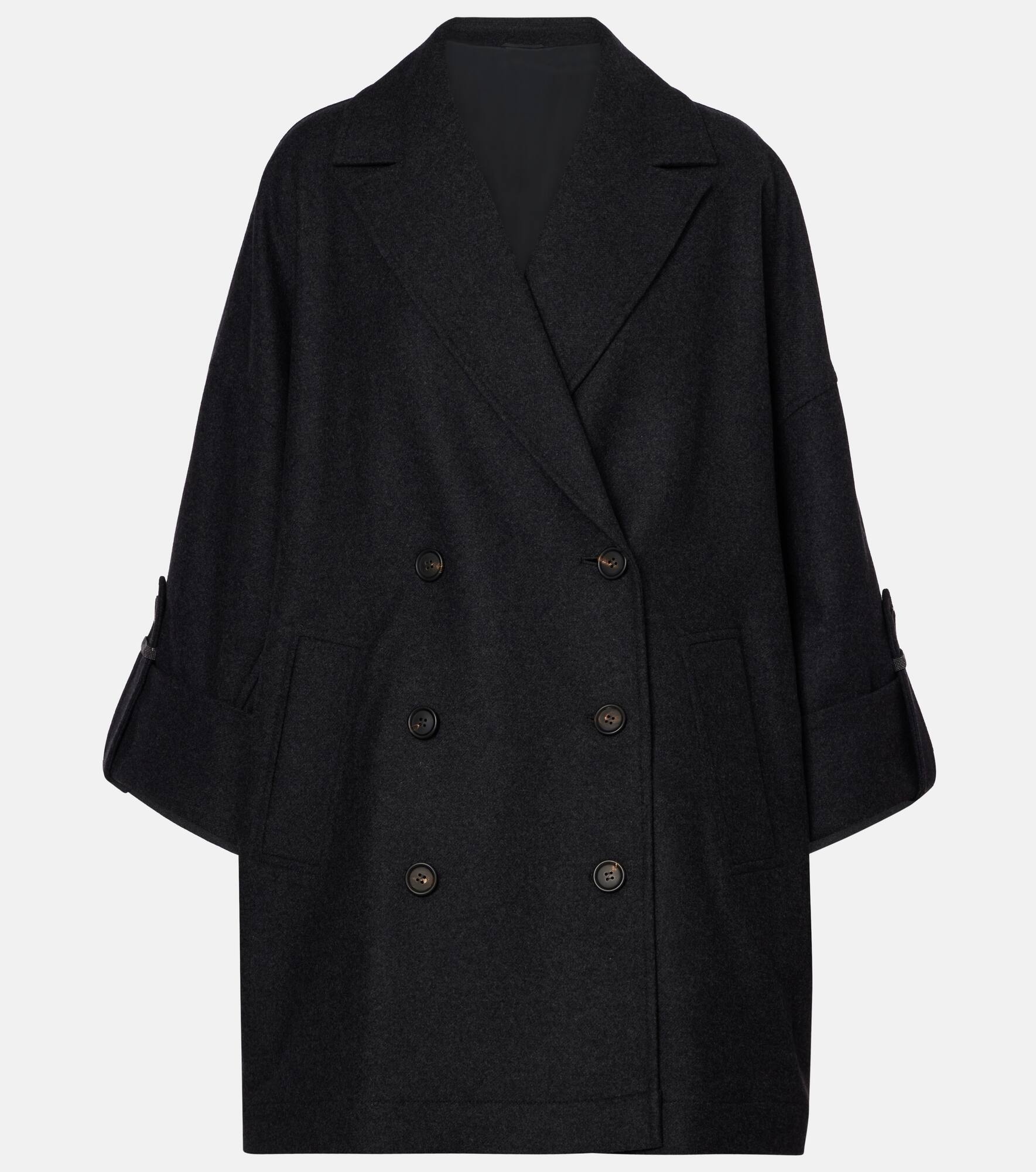 This jacket from Brunello Cucinelli combines the elegance of a double-breasted silhouette with dropped shoulders and an oversized fit. Crafted from sumptuous grey wool, this unique jacket is a refined outerwear piece. Product Details - Material: 98% wool, 2% other fibres - Care instructions: dry clean - Made in Italy - Designer color name: Anthrcite - Item color: gray - Lining: 74% acetate, 26% silk - Contains non-textile parts of animal origin - Closure: double-breasted (six buttons) - Notched lapel - Pockets: welt pockets - Item number: P01054375 Size & Fit - True to size - Oversized - Non-stretchy fabric - Falls below the hip - The model seen in the picture is 178cm-5'10" and wearing a size IT 40
