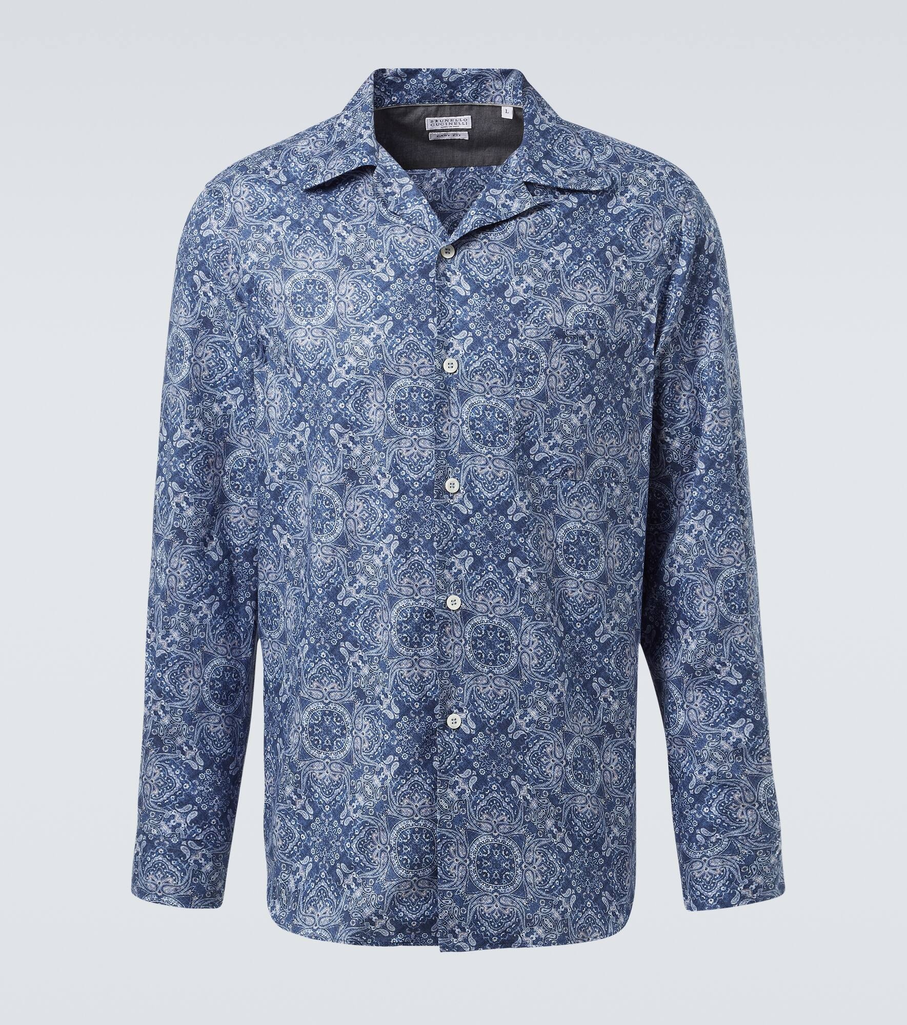 Cotton paisley twill easy fit shirt with camp collar and chest pocket
