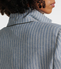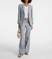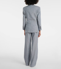 Product Details - Material: 50% linen, 35% cotton, 15% hemp - Care instructions: dry clean - Made in Italy - Designer color name: Celeste/Bianco - Closure: double-breasted buttoned front - Pockets: flap pockets - Lining: 74% acetate, 26% silk - Item number: P01016079 Size & Fit - True to size - Shoulder pad inserts - Straight fit - Non-stretchy fabric - Falls below the hip - slit length 20cm-8" - The model seen in the picture is 178cm-5'10" and wearing a size IT 40