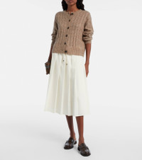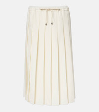 Brunello Cucinelli's designs are created in Solomeo, a medieval hamlet whose art and traditions are woven into the house's every fiber. This midi skirt is defined by its pleated silhouette and finished with an elasticated drawstring waist. Product Details - Material: 55% polyester, 45% wool - Care instructions: dry clean - Made in Italy - Designer color name: Panama - Item color: white - Lining: 74% acetate, 26% silk - Elasticated drawstring waist - Fully lined - Item number: P01083424 Size & Fit - True to size - Elasticated waist - Adjustable at the waist - Non-stretchy fabric - The model seen in the picture is 178cm-5'10" and wearing a size IT 40