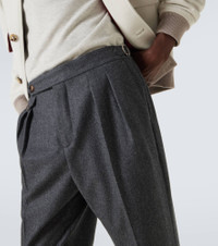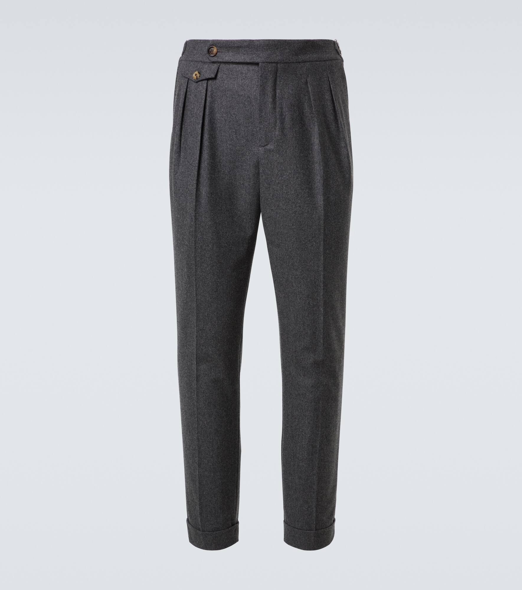 Crafted in Italy from pure virgin wool, these slim pants from Brunello Cucinelli showcase a pleated style. Brunello Cucinelli's designs are created in Solomeo, a medieval hamlet whose art and traditions are woven into the house's every fiber. Product Details - Material: 100% virgin wool - Care instructions: dry clean - Made in Italy - Designer color name: C004 - Item color: gray - Details: 100% water-buffalo horn - Contains non-textile parts of animal origin - Lining: 100% cotton - Lining II: 100% cotton - Other inner trims: 100% viscose - Item number: P01056052 Size & Fit - True to size - Adjustable at the waist - Non-stretchy fabric - Tapered leg - Height of model is 190cm-75" and wears a size 50
