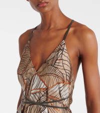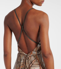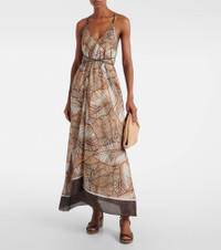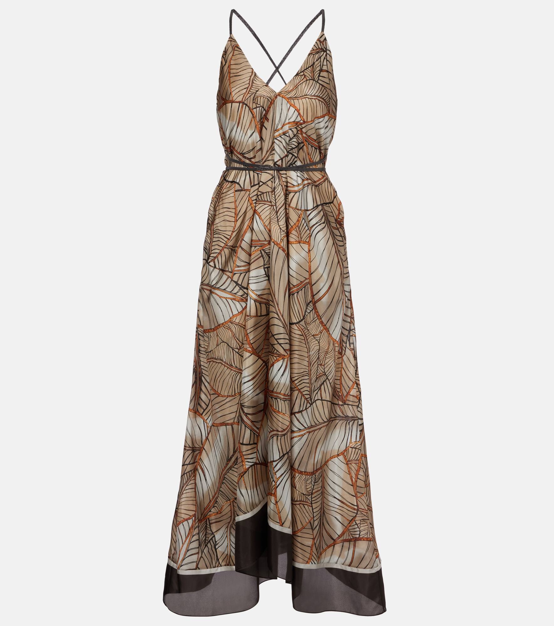 Brunello Cucinelli's designs are created in Solomeo, a medieval hamlet whose art and traditions are woven into the house's every fiber. Crafted in Italy from fluid silk, this maxi dress features sleek spaghetti straps, a V-neckline, and a tropical pattern all over. Product Details - Material: 100% silk - Care instructions: dry clean - Made in Italy - Designer color name: Papiro Print - Item color: multicolor - Material II: 100% silk - Includes: garment bag - Item number: P01054528 Size & Fit - True to size - Low back - Cinched waist - Non-stretchy fabric - The model seen in the picture is 178cm-5'10" and wearing a size XS