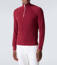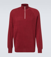 This Brunello Cucinelli sweater completes both laid-back and elevated looks with its soft construction. Crafted from pure cotton, the style features a ribbed-knit finish and a relaxed silhouette. Product Details - Material: 100% cotton - Care instructions: hand wash - Made in Italy - Designer color name: Cherry Red - Item color: burgundy - Closure: partially zipped front - Cuff: ribbed - Hem: ribbed - Item number: P01138402 Size & Fit - True to size - Straight fit - Stretchy fabric - Falls to the hip - Height of model is 189cm-74.5" and wears a size IT 48