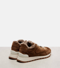 The Runner sneakers from Brunello Cucinelli are crafted from buttery-soft suede and canvas in a dynamic silhouette suited to active lifestyles. Subtle signature Monili beads add a touch of sparkle and refined elegance. Product Details - Upper: leather (suede) - Lining: fabric - Sole: fabric insole, rubber sole - Toe shape: round toe - Made in Italy - Includes: shoe box - Designer color name: Liht Brown - Item color: beige - Item number: P01083567 Size & Fit - True to size - European sizes - 2cm-1" platform (size EU 38) - 3,5cm-1.5" wedge heel (size EU 38)
