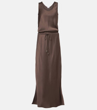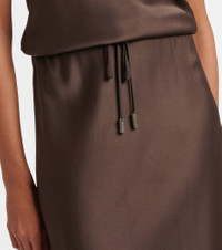 Product Details - Material: 61% acetate, 39% viscose - Care instructions: dry clean - Made in Italy - Designer color name: Cacao - Lining: 74% acetate, 26% silk - Drawstring waist - Comes with garment bag - Item number: P01016002 Size & Fit - True to size - Loose fit, drawstring waist - Non-stretchy fabric - slit length 54,0cm-21.5" - The model seen in the picture is 178cm-5'10" and wearing a size XS