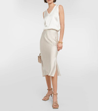 Each Brunello Cucinelli design is handmade in Solomeo, a medieval hamlet whose art and traditions are woven into the house's every fiber. Made from shiny satin, this midi skirt sits at mid-waist and has a fluid silhouette with a side slit. Product Details - Made in Italy - Care instructions: dry clean - Material: 100% polyester - Designer color name: Marble - Item number: P00822370 Size & Fit - True to size - Mid-weight material - slit length 36.0cm-14" - The model seen in the picture is 178cm-5'10" and wearing a size IT 40