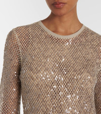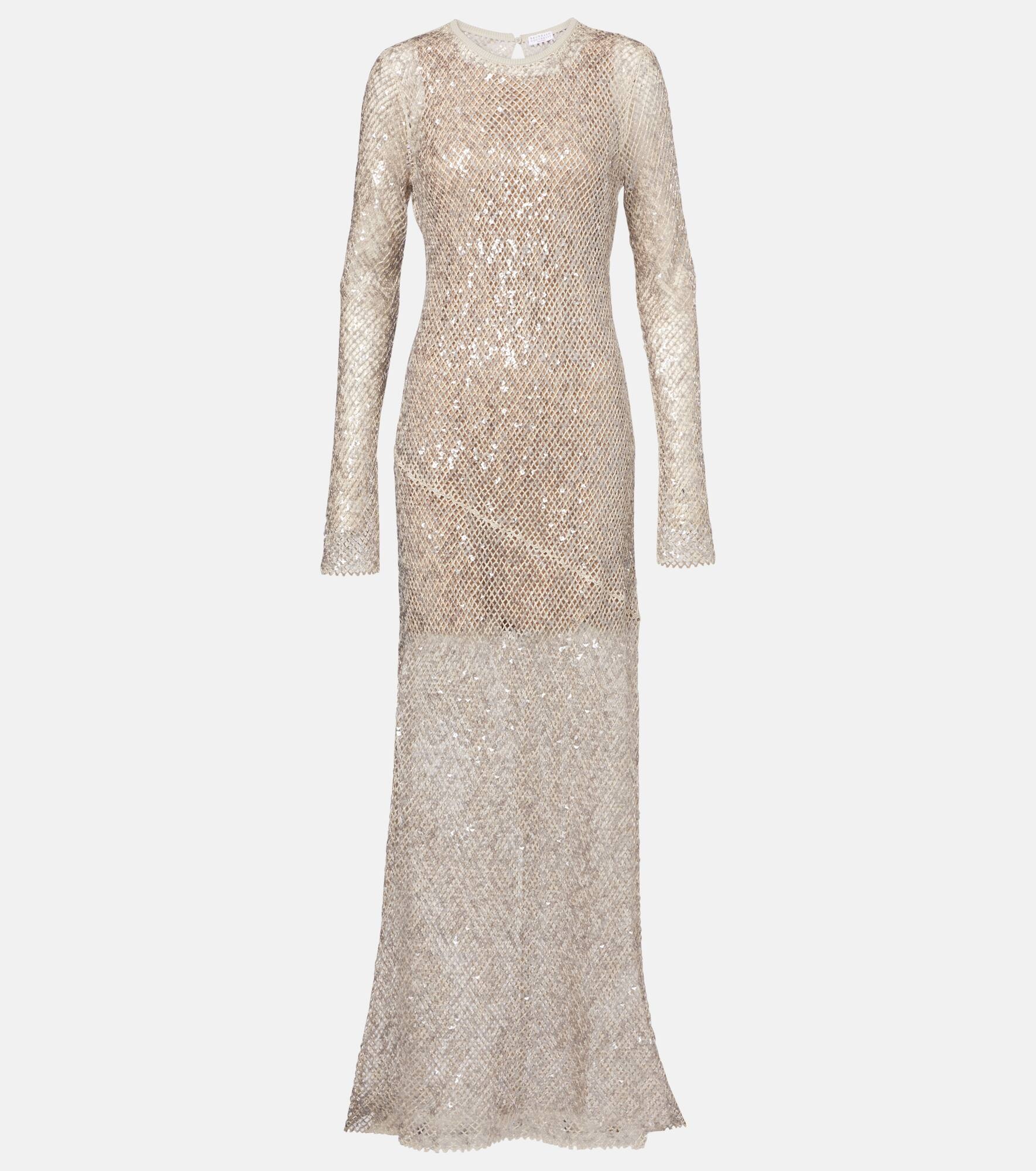 Dazzling net embroidery knit dress in linen and silk