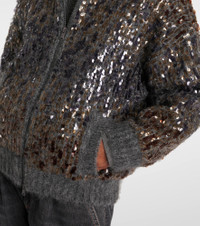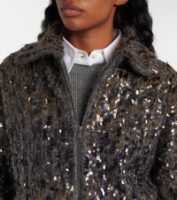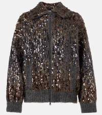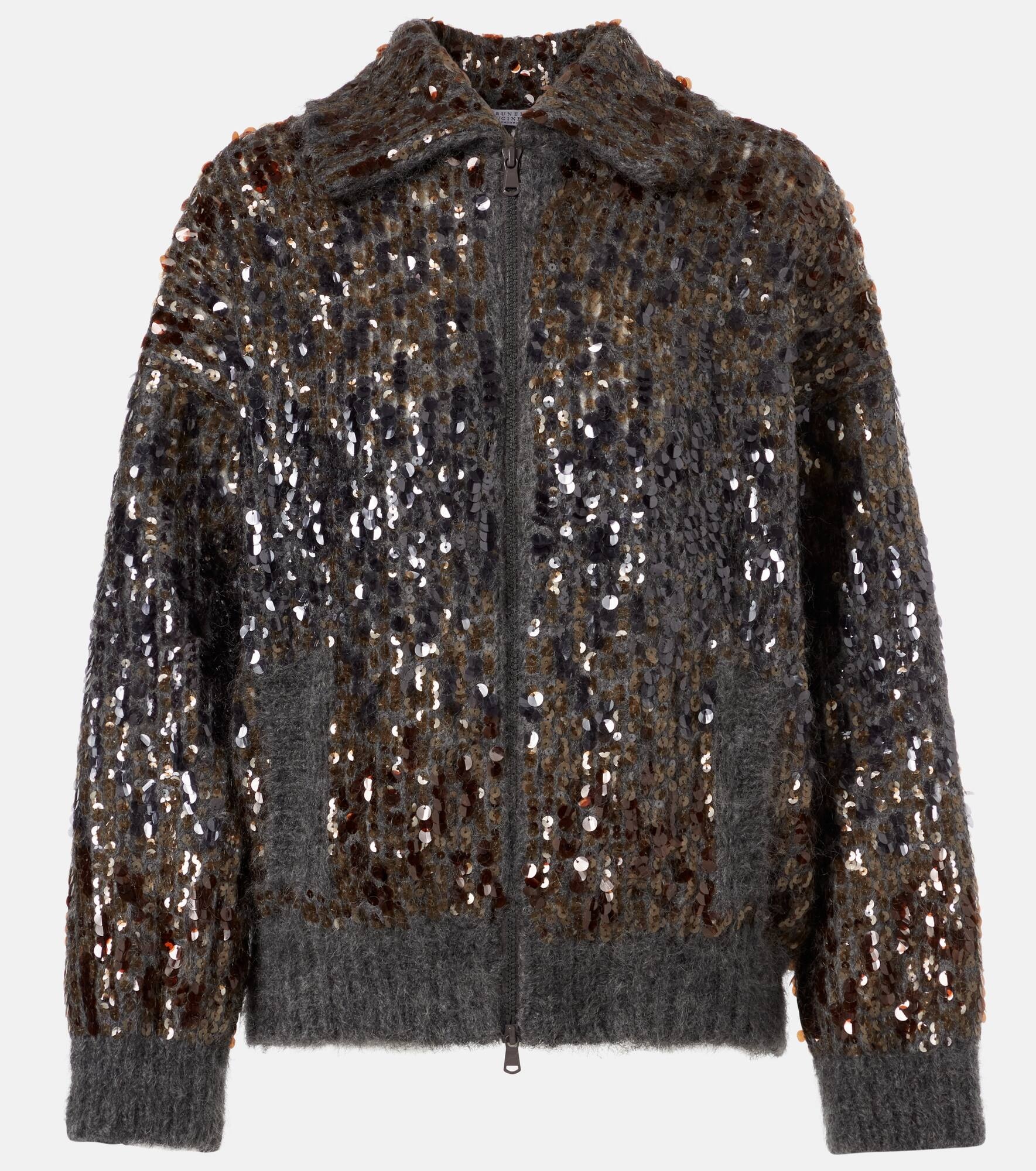This mohair-blend zip-up sweater from Brunello Cucinelli features a polo collar and a two-way zipped front. Its soft exterior is embellished with sequins, adding a touch of playful glamour to a refined design. Product Details - Material: 81% mohair, 11% polyamide, 8% wool - Care instructions: hand wash - Made in Italy - Designer color name: Grigio Scuro - Material II: 60% wool, 30% cashmere, 10% silk - Details: 100% polyester - Collar: polo collar - Sleeves: long-sleeved - Closure: two-way zipped front - Pockets: slit pockets, internal pockets - Contains non-textile parts of animal origin - Item number: P01041520