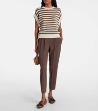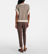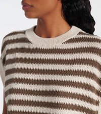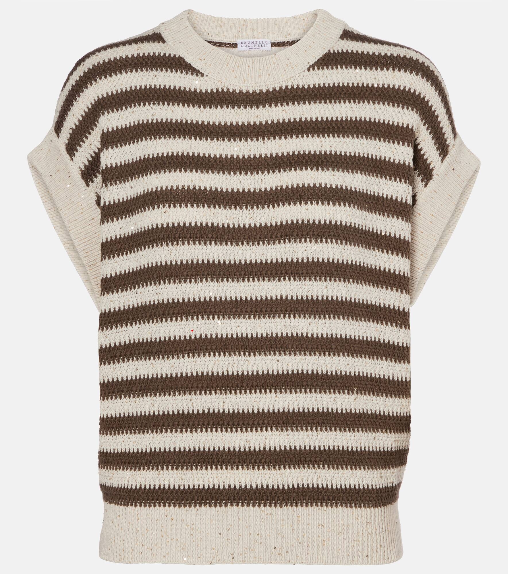 Brunello Cucinelli's designs are created in Solomeo, a medieval hamlet whose art and traditions are woven into the house's every fiber. Expertly knitted from a cotton blend, this sweater vest features a classic striped pattern and is embellished with dazzling sequins. Product Details - Material: 96% cotton, 4% polyester - Care instructions: hand wash - Made in Italy - Designer color name: Avena+Chocolate - Item color: beige, brown - Item number: P01054497