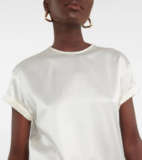 This T-shirt from Brunello Cucinelli makes a glamorous ensemble out of your favorite off-duty staple. Made from a lustrous silk-blend satin to a relaxed fit, it's finished with a signature monili bead trim. Product Details - Material: 96% silk, 4% elastane - Made in Italy - Care instructions: hand wash - Designer color name: Naturale - Item number: P00822387 Size & Fit - True to size - Dropped shoulders - Designed for a loose fit - Non-stretchy fabric - Falls to the hip - The model seen in the picture is 178cm-5'10" and wearing a size XS
