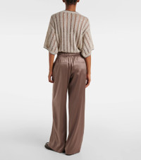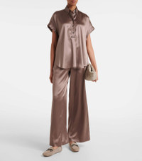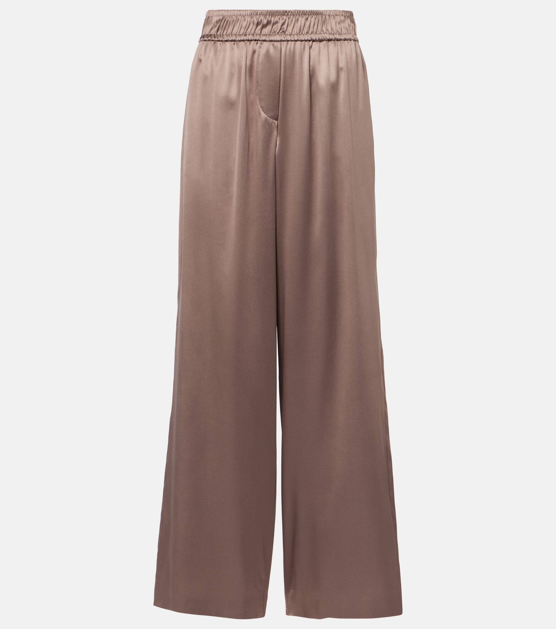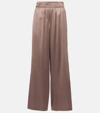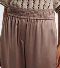 Product Details - Material: 96% silk, 4% elastane - Care instructions: dry clean - Made in Italy - Designer color name: Cacao - Lining: 74% acetate, 26% silk - Pockets: side slit pockets, back pockets - Elasticated waistband - Item number: P01016201 Size & Fit - True to size - Elasticated waist - Non-stretchy fabric - Wide-leg - The model seen in the picture is 178cm-5'10" and wearing a size IT 40