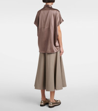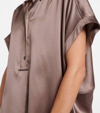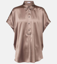 Product Details - Material: 96% silk, 4% elastane - Care instructions: dry clean - Made in Italy - Designer color name: Cacao - Closure: buttoned front - Item number: P01015975 Size & Fit - True to size - Designed for a loose fit - Non-stretchy fabric - Falls to the hip - The model seen in the picture is 178cm-5'10" and wearing a size XS