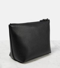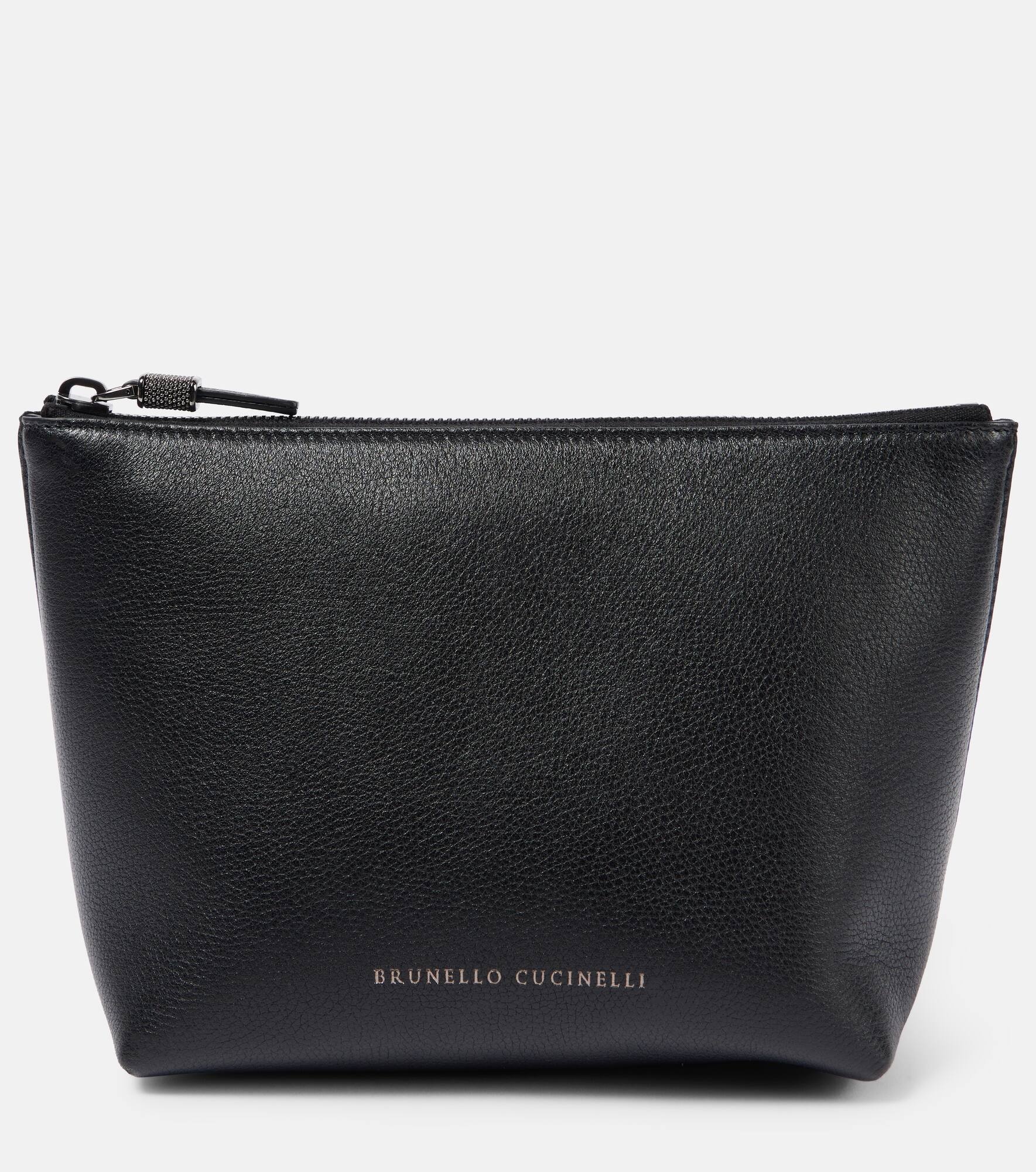 Grained leather pouch with shiny zipper pull