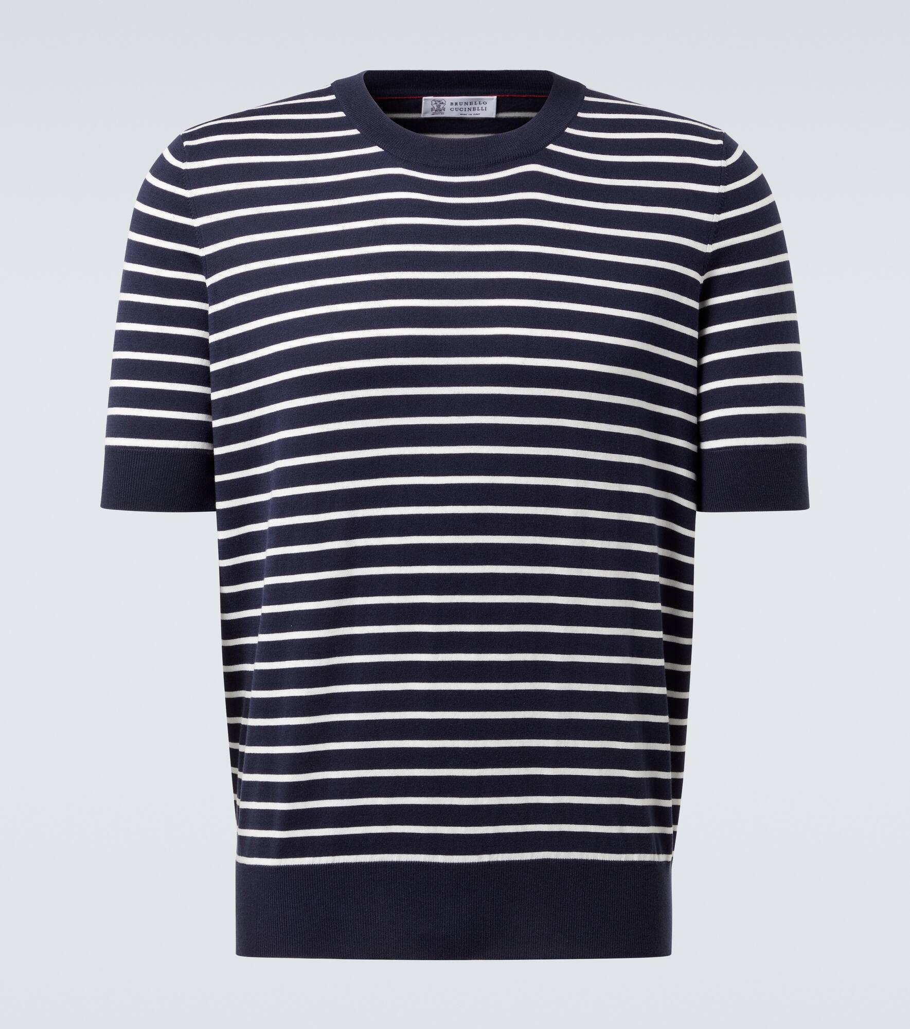 Slim-Fit Striped Cotton T-Shirt Navy