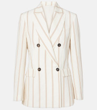 Product Details - Material: 56% linen, 44% cotton - Care instructions: dry clean - Made in Italy - Designer color name: Panama/Camel - Lining: 74% acetate, 26% silk - Closure: double-breasted buttoned front - Pockets: flap pockets - Item number: P01016081 Size & Fit - True to size - Cinched waist - Non-stretchy fabric - Falls below the hip - The model seen in the picture is 178cm-5'10" and wearing a size IT 40