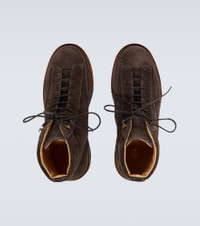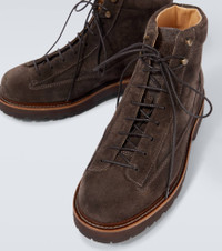 These ankle boots from Brunello Cucinelli combine an urban outdoor attitude with functionality and comfort. Crafted from velvety suede, this pair is detailed with tweed tongues made from silk, wool, and cashmere, lending a modern touch. Product Details - Upper: leather (suede) - Lining: leather - Sole: leather insole, rubber sole - Toe shape: round toe - Made in Italy - Includes: dust bag, extra laces, cleaning brush, shoe box - Designer color name: Czd87 - Item color: brown - Item number: P01056145 Size & Fit - True to size - European sizes