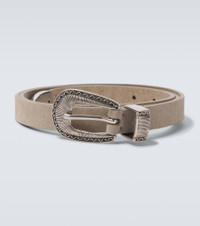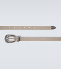 An effortless way to elevate any outfit is with the perfect statement accessory. This Brunello Cucinelli belt has an intricate buckle and is made from supple suede. Product Details - Material: 100% bull leather - Care instructions: do not wash - Made in Italy - Designer color name: Cerbiatto - Item color: beige - Item number: P01056109 Size & Fit - Width 2cm-1" - Buckle width 4cm-1.5"