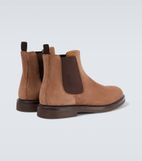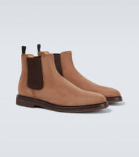 In a classic Chelsea silhouette, these brown boots from Brunello Cucinelli are expertly crafted in Italy from suede. This pair features elasticated panels on each side and textured textile pull tabs at the back. Product Details - Upper: leather (suede) - Lining: leather - Sole: leather insole, rubber sole - Toe shape: almond toe - Made in Italy - Includes: dust bag, shoe box - Designer color name: C2692 - Item color: brown - Item number: P01056139 Size & Fit - Fits large to size - we recommend trying one size smaller - European sizes