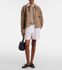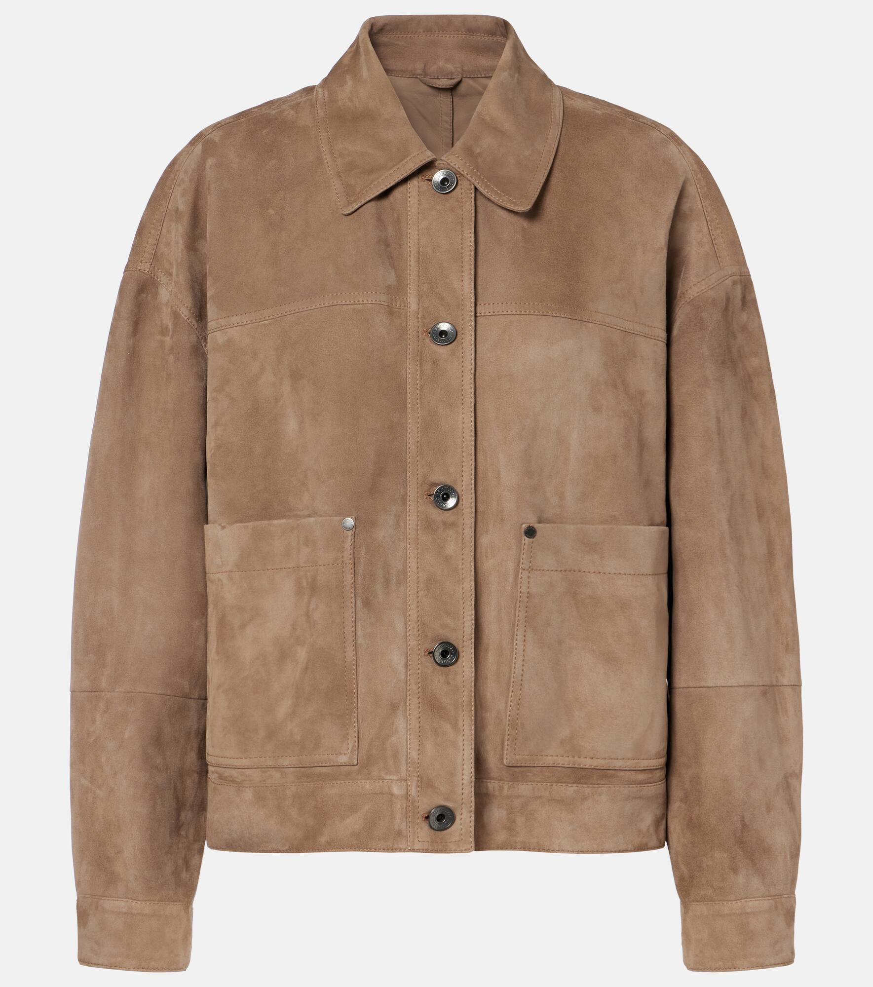 Brunello Cucinelli's designs are created in Solomeo, a medieval hamlet whose art and traditions are woven into the house's every fiber. Crafted in Italy from suede, this field jacket features a buttoned front and two practical patch pockets. Product Details - Material: 100% lamb leather (suede) - Care instructions: specialist clean - Made in Italy - Designer color name: Cool Brown - Item color: brown - Pocket lining: 74% acetate, 26% silk - Details: 100% brass - Contains non-textile parts of animal origin - Includes: dust bag - Closure: buttoned front - Collar: classic (Straight point) - Pockets: patch pockets - Item number: P01054228 Size & Fit - True to size - Dropped shoulders - Designed for a loose fit - Non-stretchy fabric - Falls to the hip - The model seen in the picture is 178cm-5'10" and wearing a size IT 40