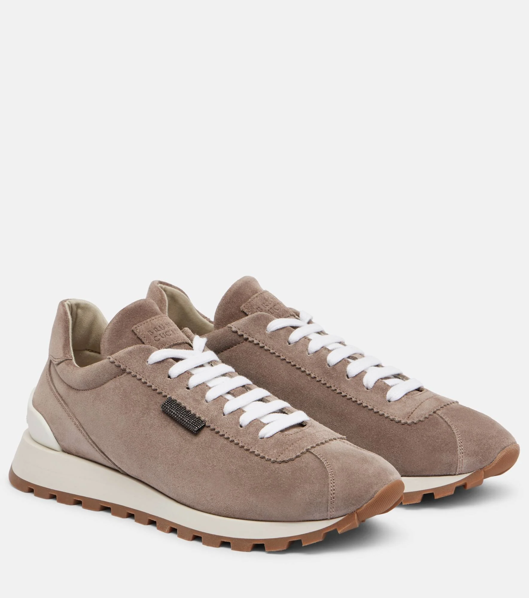 Why choose between comfort and style when you could have both? These suede sneakers from Brunello Cucinelli can be dressed up or down depending on your daily needs. Product Details - Upper: leather - Lining: fabric - Sole: fabric insole, rubber sole - Toe shape: almond toe - Made in Italy - Includes: shoe box, dust bags - Designer color name: Vigogna - Item color: brown - Item number: P01058353 Size & Fit - True to size - European sizes - 2cm-1" platform (size EU 38) - 3,5cm-1.5" wedge heel (size EU 38)