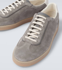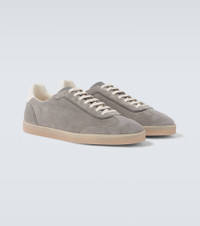 Brunello Cucinelli elevates laid-back styles with these sneakers. The pair is crafted in Italy from velvety suede with a lightweight construction, making it a comfortable choice for your everyday routine. Product Details - Upper: leather - Lining: leather - Sole: leather insole, rubber sole - Toe shape: round toe - Made in Italy - Includes: dust bag, shoe box - Designer color name: Nebbia + Panama + Fumo - Item color: gray - Closure: lace-up - Item number: P01138619 Size & Fit - Fits slightly large to size - we recommend trying a half size smaller - European sizes