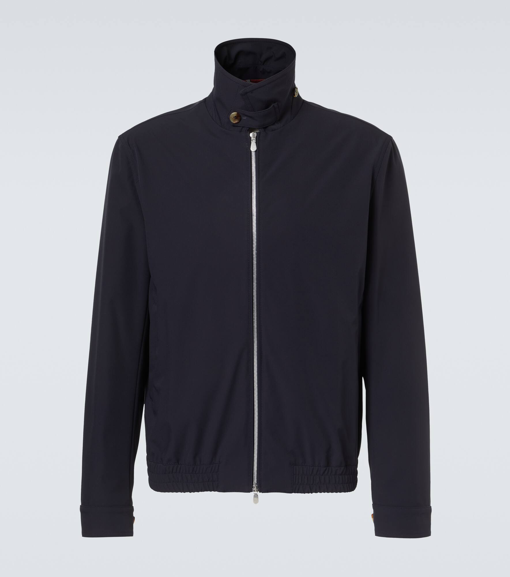 Blending function and style, this Brunello Cucinelli blouson suits both sporty and urban settings. Crafted in Italy from a technical fabric, its design is finished with a zip-up front, a high neck, and a gathered hem. Product Details - Material: 88% polyamide, 12% elastane - Care instructions: dry clean - Made in Italy - Designer color name: Cau28 - Item color: blue - Lining: 100% cupro - Contains non-textile parts of animal origin - Closure: two-way zipped front - Hem: elasticated - Item number: P01055987 Size & Fit - True to size - Straight fit - Elasticated hem - Non-stretchy fabric - Height of model is 189cm-74.5" and wears a size IT 50