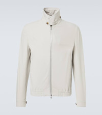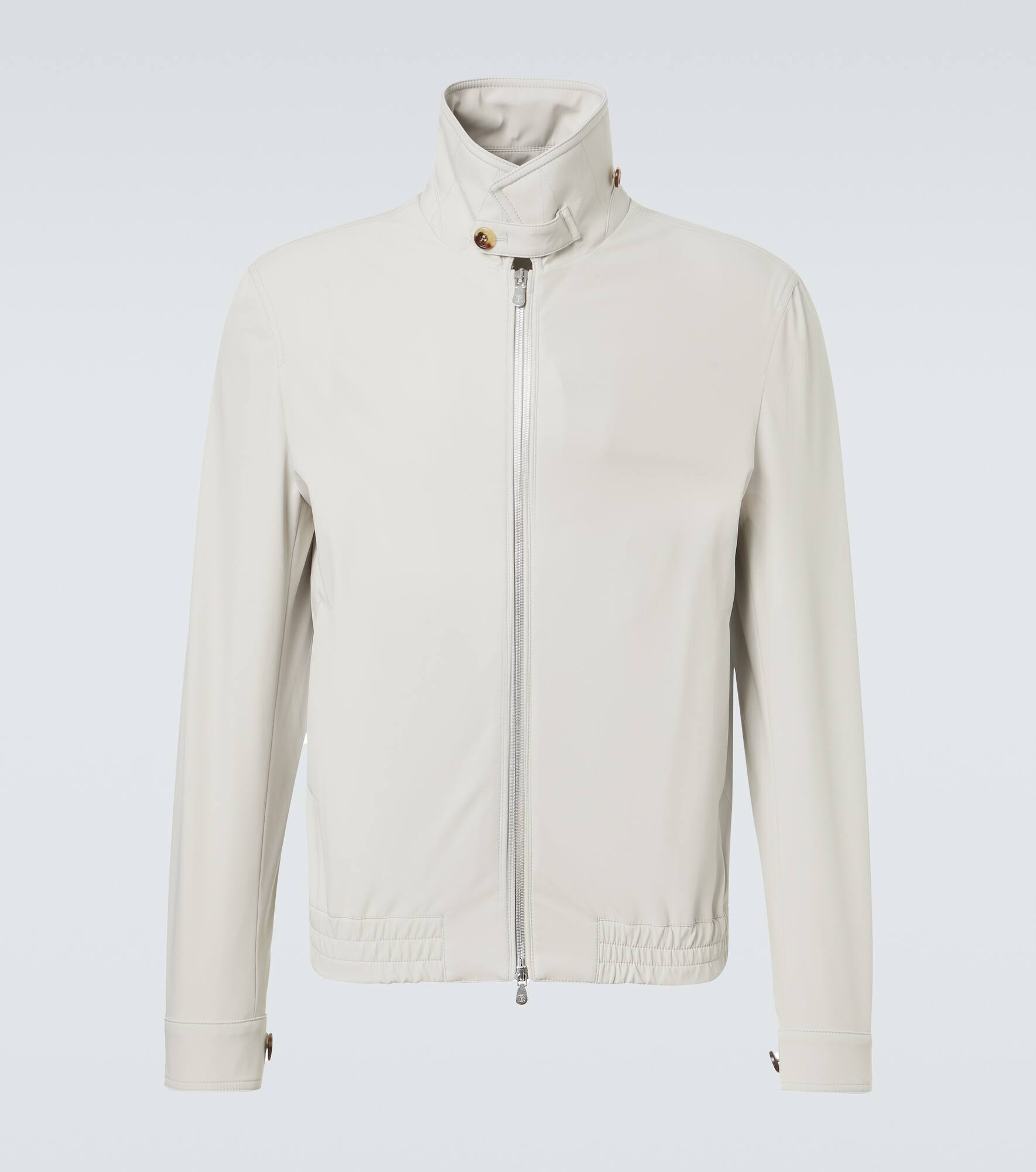 Blending function and style, this Brunello Cucinelli blouson suits both sporty and urban settings. Crafted in Italy from a technical fabric, its design is finished with a zip-up front, a high neck, and a gathered hem. Product Details - Material: 88% polyamide, 12% elastane - Care instructions: dry clean - Made in Italy - Designer color name: Cii64 - Item color: gray - Lining: 100% cupro - Closure: two-way zipped fastening - Pockets: internal pockets - Includes: dust bag - Item number: P01055988 Size & Fit - True to size - Straight fit - Elasticated hem - Non-stretchy fabric - Height of model is 189cm-74.5" and wears a size IT 46