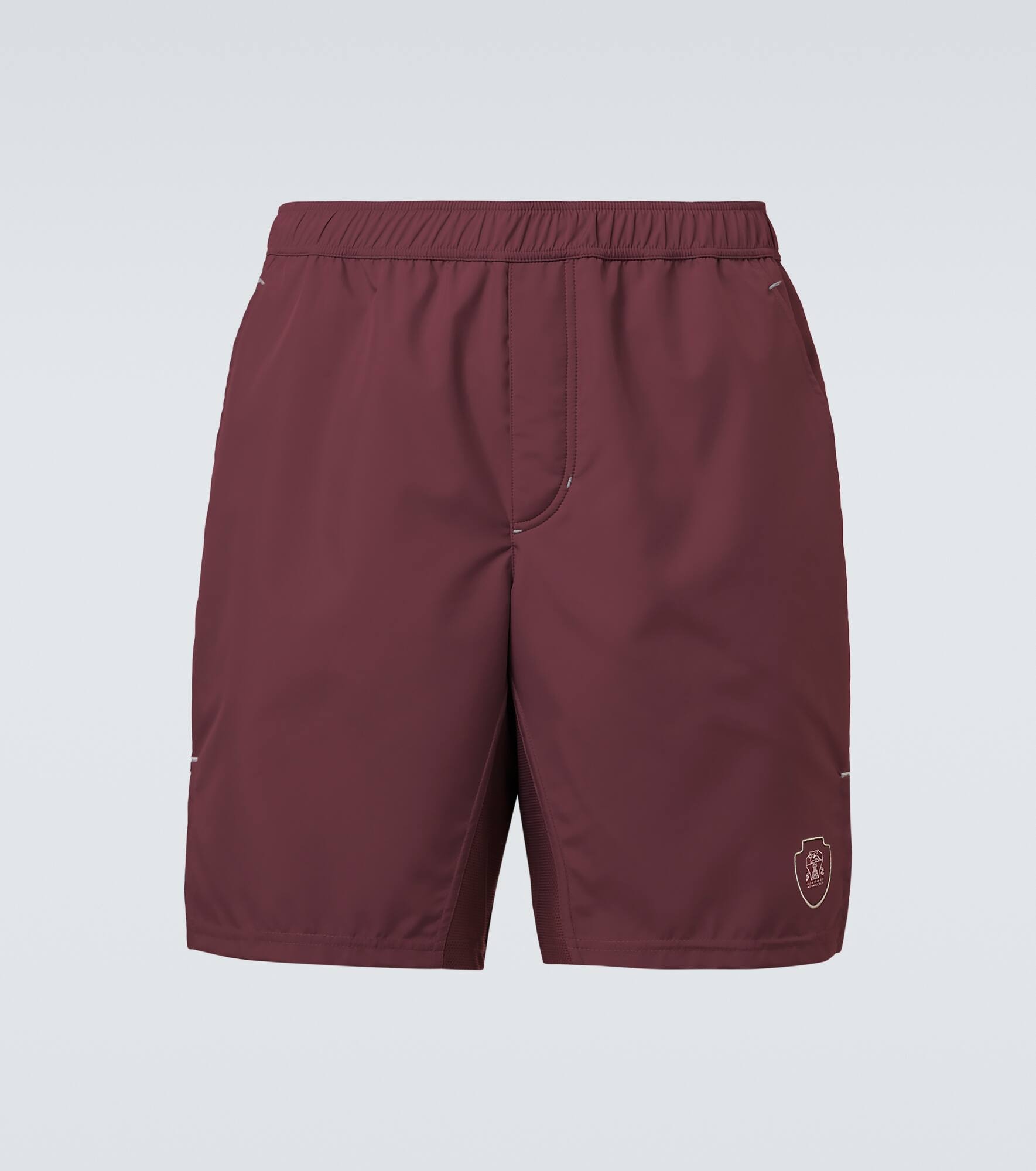 Turn to Brunello Cucinelli for menswear that whispers rather than shouts. Complete with the brand's logo, these shorts are made from burgundy-hued technical material for durability. Product Details - Material: 93% polyester, 7% polyurethane - Care instructions: machine wash at 30 degrees - Made in Italy - Designer color name: Amaranto - Item color: red - Material II: 84% polyester, 16% elastane - Item number: P01056090 Size & Fit - True to size - Elasticated waist - Adjustable at the waist - Non-stretchy fabric - Wide-leg - The model in the picture is 185cm-6'1" and wearing a size L