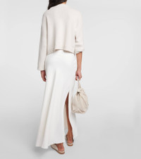 Product Details - Material: 73% viscose, 27% linen - Care instructions: do not wash - Made in Italy - Designer color name: Naturale - Lining: 74% acetate, 26% silk - Material II: 80% polyester, 20% elastane - Item number: P00903062 Size & Fit - True to size - Non-stretchy fabric - High-waisted - slit length 56cm-22" - The model seen in the picture is 178cm-5'10" and wearing a size IT 40