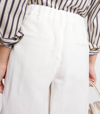 Product Details - Material: 73% viscose, 27% linen - Care instructions: dry clean - Made in Italy - Designer color name: Panama - Lining: 65% acetate, 5% polyester - Pockets: side slit pockets, back pockets - Item number: P00903061 Size & Fit - True to size - Elasticated waist - Wide-leg - High-waisted - The model seen in the picture is 178cm-5'10" and wearing a size IT 40