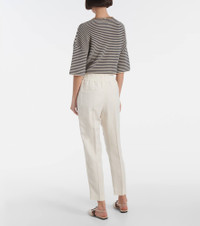 Product Details - Material: 73% viscose, 27% linen - Care instructions: dry clean - Made in Italy - Designer color name: Panna - Pockets: side slit pockets, back pockets - Elasticated waistband - Item number: P01016032 Size & Fit - Fits large to size - we recommend trying one size smaller - Elasticated waist - Non-stretchy fabric - Tapered leg - The model seen in the picture is 178cm-5'10" and wearing a size IT 38