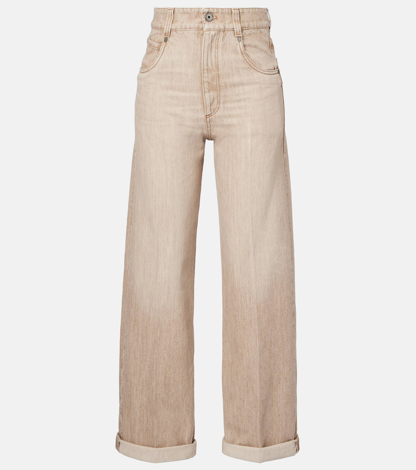 Brunello Cucinelli's designs are created in Solomeo, a medieval hamlet whose art and traditions are woven into the house's every fiber. These jeans are made to a wide-leg silhouette. Product Details - Material: 100% cotton - Care instructions: machine wash at 30 degrees - Made in Italy - Designer color name: Vintage Wash - Item color: beige - Lining: 100% cotton - Details: 100% leather - Contains non-textile parts of animal origin - Item number: P01054262 Size & Fit - True to size - Non-stretchy fabric - Wide-leg - High-waisted - The model seen in the picture is 178cm-5'10" and wearing a size IT 40